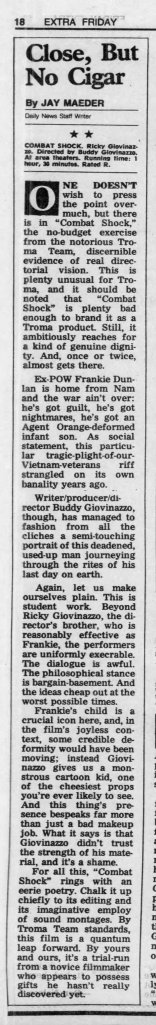 One of the great films of the eighties, Buddy Giovinazzo’s ferocious and visionary Combat Shock remains one of the most visceral works of American cinema ever created. The history of Combat Shock should be fairly well-known to most fans of American independent cinema, but a quick overview goes like this. Buddy Giovinazzo was a student filmmaker from Staten Island when he began shooting his self-funded feature film debut, under his preferred title, American Nightmares, in 1984 with family, fellow students, and friends. After some early screenings, Troma picked the film up and re-titled it the more commonly known Combat Shock. While we should applaud Troma for picking up such an uncompromising DIY feature, they cut many of Giovinazzo’s most extreme moments and added stock Vietnam footage to capitalize on the namsploitation movement of the mid-eighties. The cuts and new footage neutered the film, but Giovinazzo’s haunting story of a shell-shocked veteran collapsing under the weight of the ‘American dream’, on the streets of New York, still resonated. The most harrowing vision of the horrors of post-war trauma seen since The Deer Hunter shocked into submission audience members tricked by Troma’s poster promising a Missing In Action style exploitation flick. Met with disdain by ‘respectable’ critics, the likes of the great Stephen Bissette and other underground writers who recognized its importance championed Combat Shock. Despite Giovinazzo never being granted his proper place as one of modern cinema’s most important and visionary filmmakers, Combat Shock refused to die and by the mid-nineties, the uncut American Nightmares became one of the most essential and sought-after bootlegs on the grey market VHS circuit.