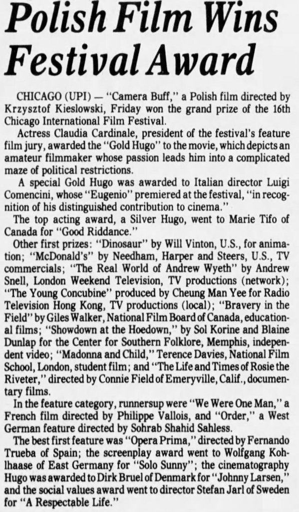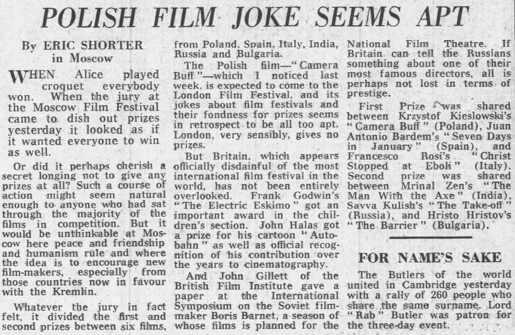 Here is a collection of clippings marking Camera Buff’s theatrical release: