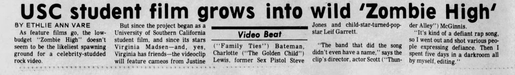Zombie High was the brainchild of troubled USC film school graduate Aziz Ghazal, an aspiring filmmaker who committed suicide in 1993 after murdering his wife and daughter. Ghazal wrote the savvy script for Zombie High while he was a student at USC and he produced the film along with Elliot Kastner. Even though Ghazal’s life ended with a horrific tragedy, his script (which featured some additional pre-production input from television writer Tim Doyle and relative novice Elizabeth Passarelli) has a real spark to it and shows him as a talented man with a real flair for topical humor and clever dialogue.