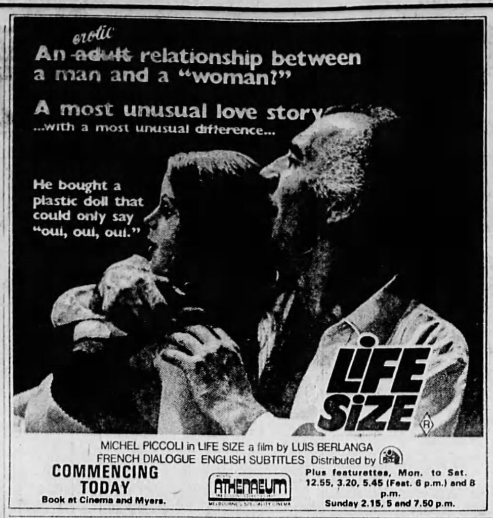 Attempting to research LIFE SIZE was a bit of a challenge but I dug up a few reviews and articles I’m sharing here. Critical reaction was mixed and it turns out that a film featuring a life size doll being repeatedly brutalized for 100 minutes was a hard sell to the public. LIFE SIZE has all but vanished from view save for an ancient older import DVD release. Thankfully it is available online with custom subs for any adventurous brave enough to partake.