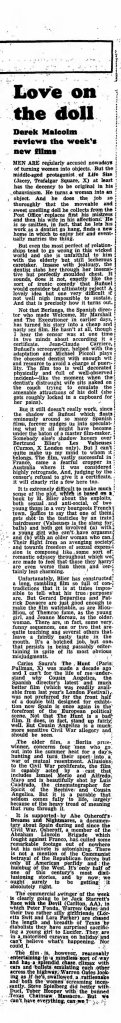 For Piccoli, the doll was so lifelife that she actually became the star of the film. Interviewed by IL PICCOLO at the time of filming, he stated “It was risky, but it was exciting and I got a taste for the game, I learned to make it move and even improvise with it. Many scenes unfolded spontaneously, depending on the doll’s unpredictable reactions. For me, she was the ‘star’ in every sense of the word.”
