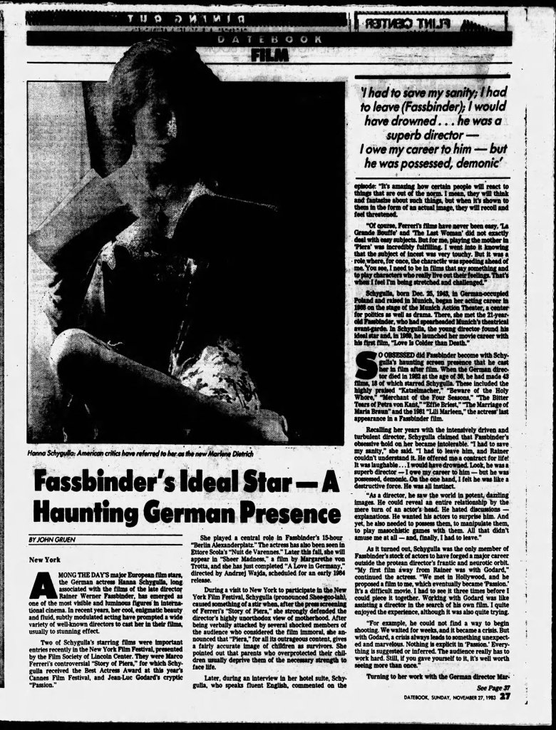 Tonight while I was writing a bit on Marco Ferreri’s incredible THE STORY OF PIERA tonight I came across this great profile of Hanna Schygulla and was impressed. Enjoy.