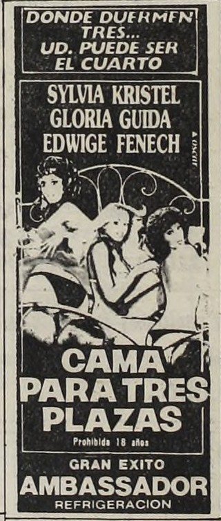 Earlier today this vintage poster advertising a film entitled Cama Para Tres Plazas (The Three-Way Bed) popped up on eBay advertising a most mysterious film. The seller described the poster with the following: