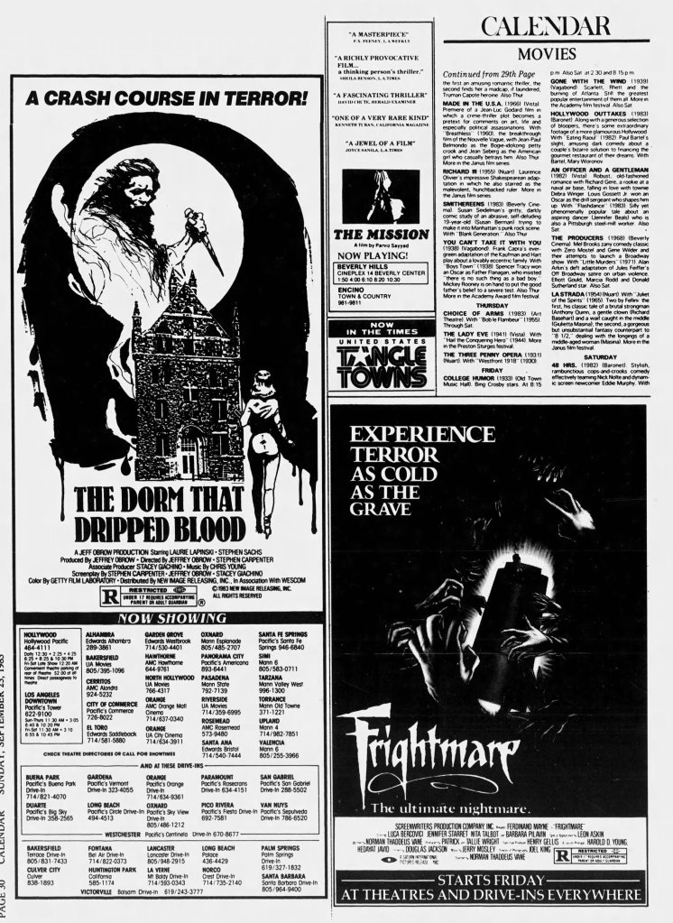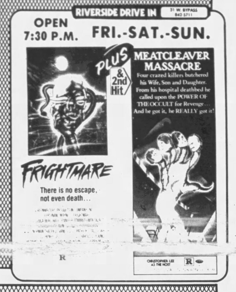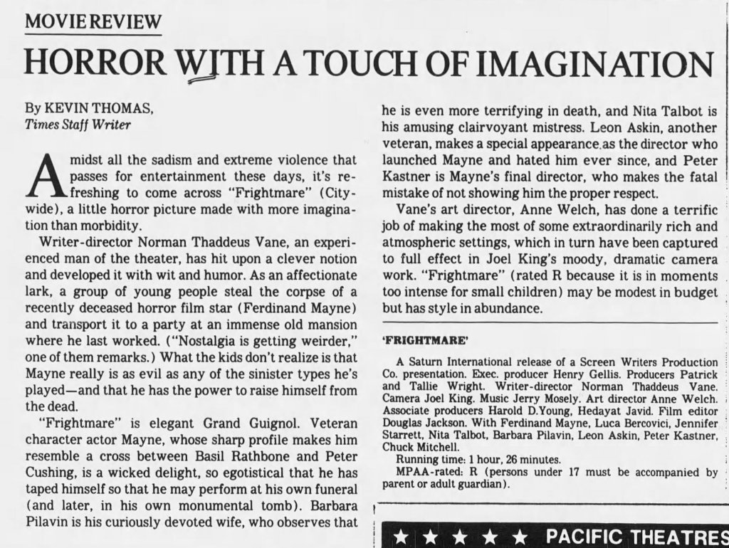 After a late 1983 Summer theatrical release, FRIGHTMARE did indeed become a middle-shelf special via that Vestron VHS before Troma unleashed the film’s original special edition DVD. Here are some clippings I discovered while researching the film for any interested: