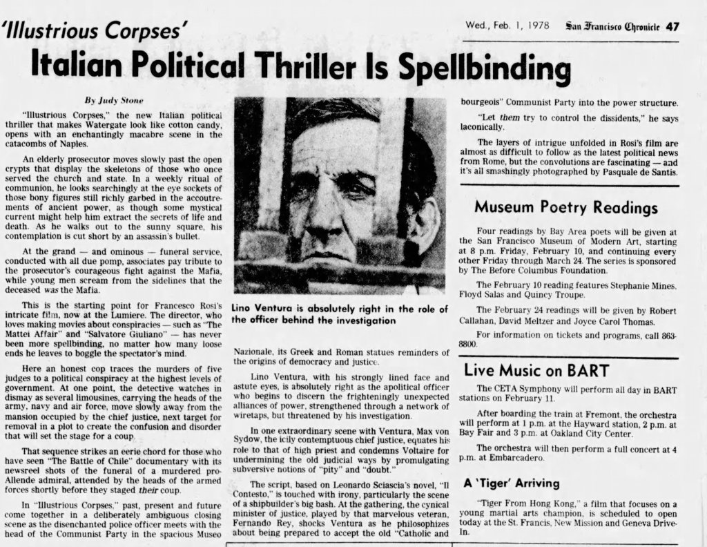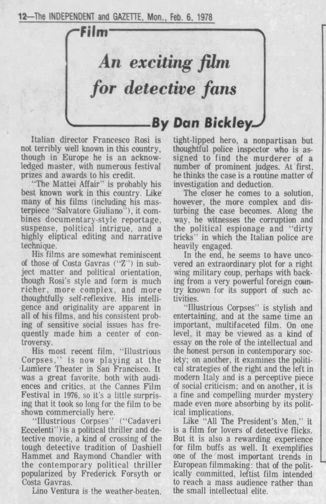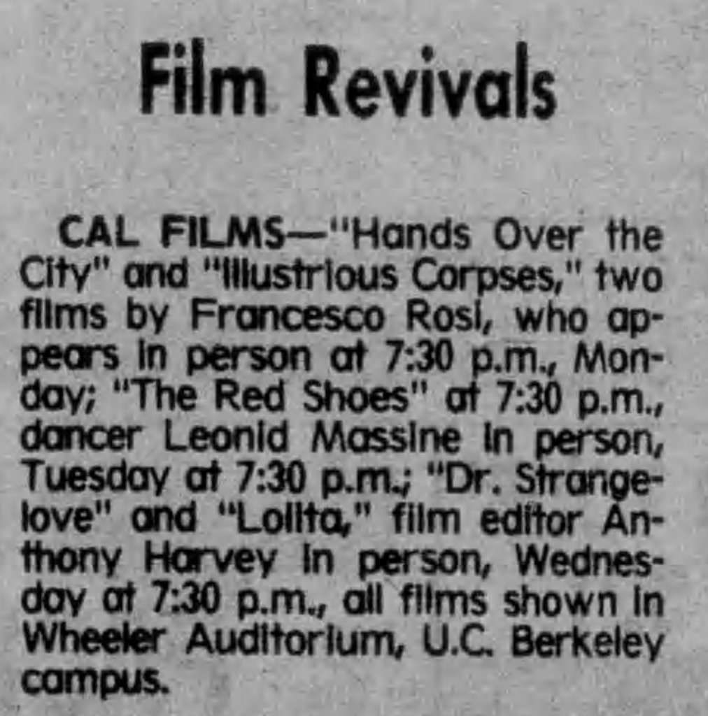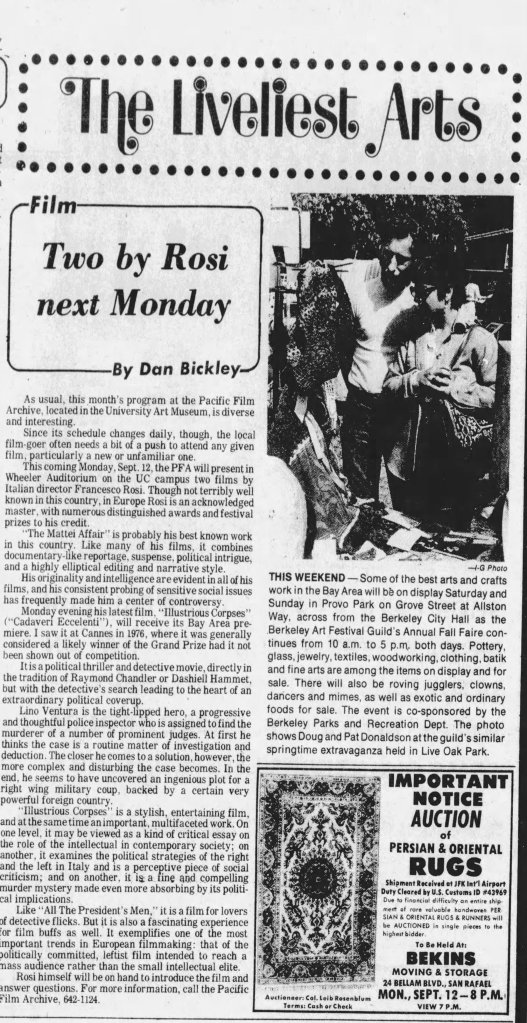 Also, here is a second collection of clippings I discovered regarding Rosi visting the Berkeley campus in 1978 to introduce this film in person.