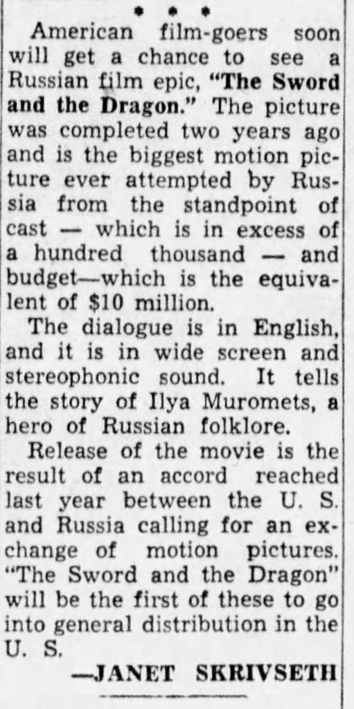 This past week I finally sat down and watched some films by Aleksandr Ptushko. I took the dive via Deaf Crocodile’s recent restorations of four essential titles, sold individually and as the Aleksandr Ptushko Fantastika Blu-ray box-set. Here are my reviews from my Letterboxd page for each film, along with some vintage clippings I found documenting the retitled stateside releases. These are beautiful releases from Deaf Crocodile, and I’m so happy to finally see these films that my young self read about so many years ago, as I note below.