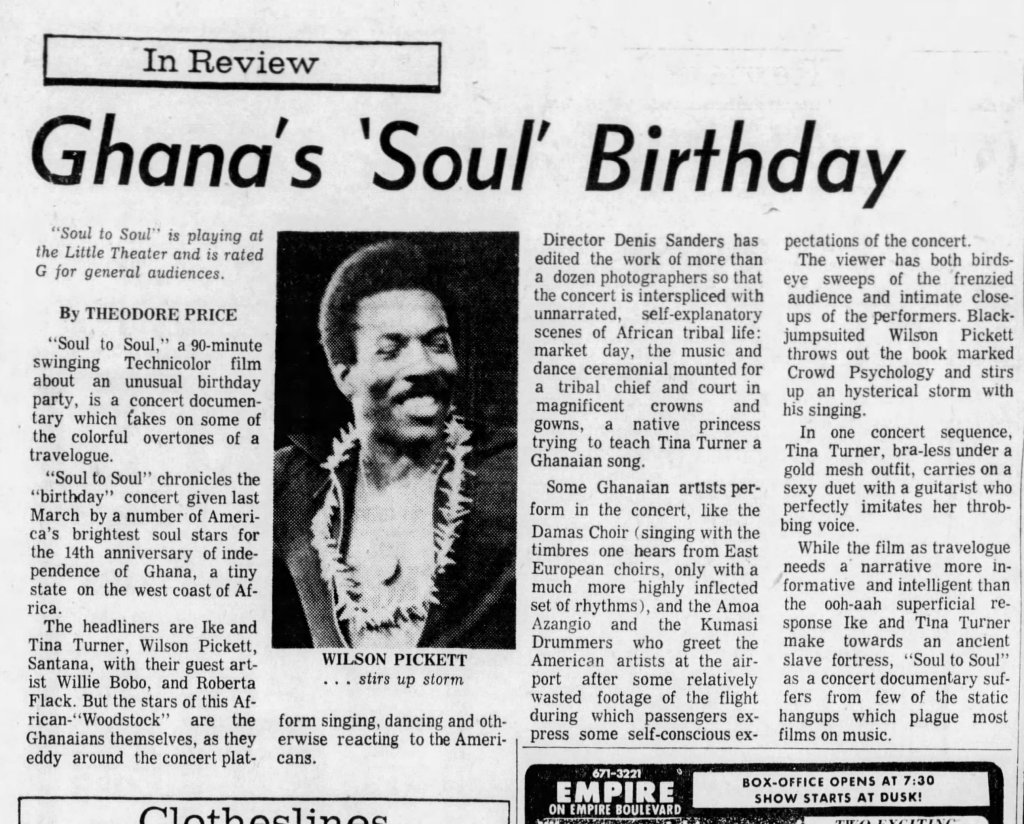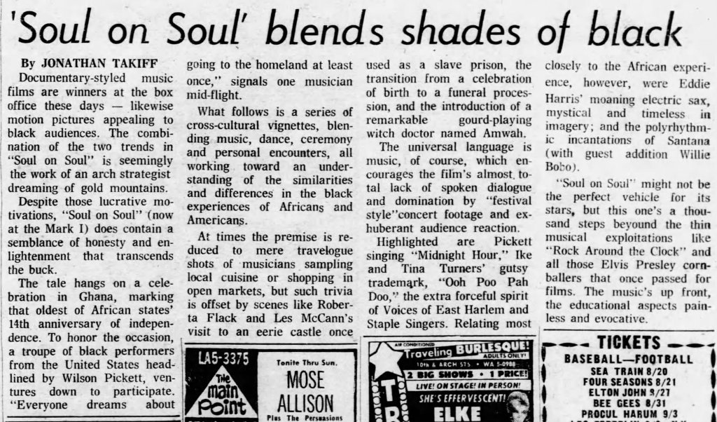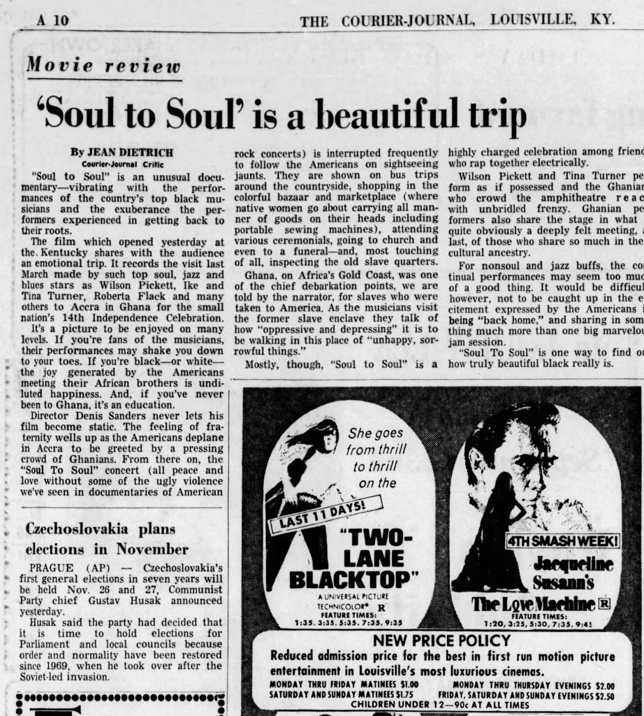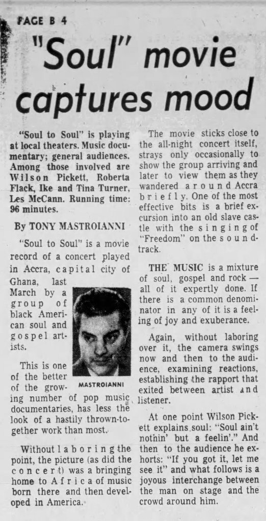 Enjoy these further clippings related to Soul to Soul that I discovered while writing this piece: