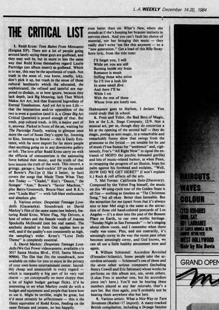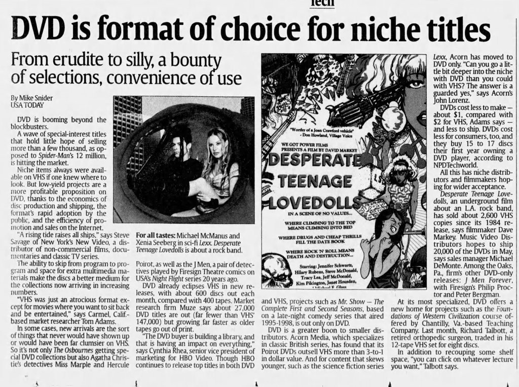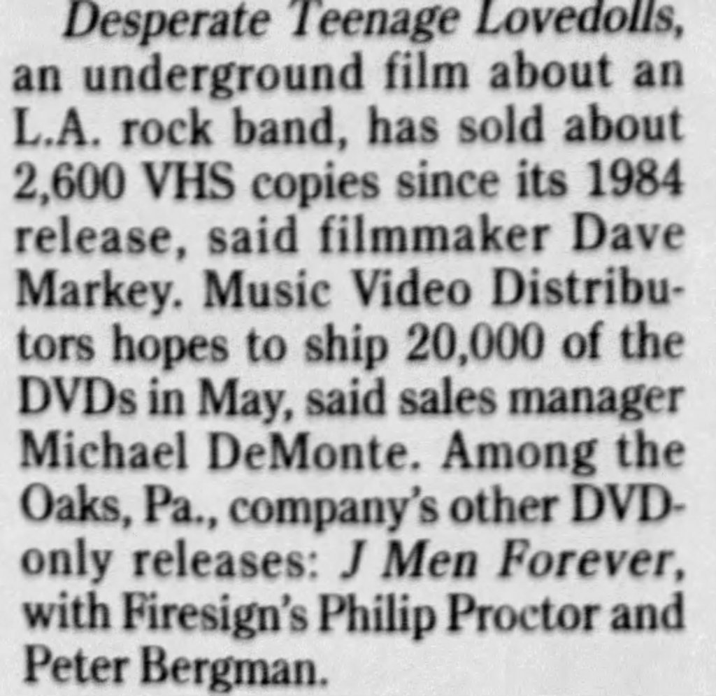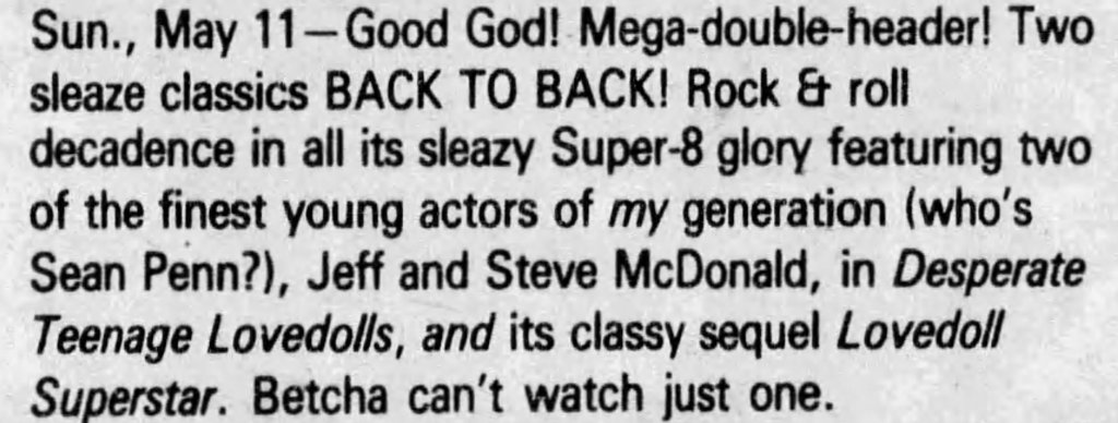 For American Punk fans, Trash-culture enthusiasts, and fans of Super 8 guerrilla filmmaking, this new edition of Desperate Teenage Lovedolls is essential. Hopefully, it’ll lead to another generation discovering this special little film and its truly glorious continuation.
