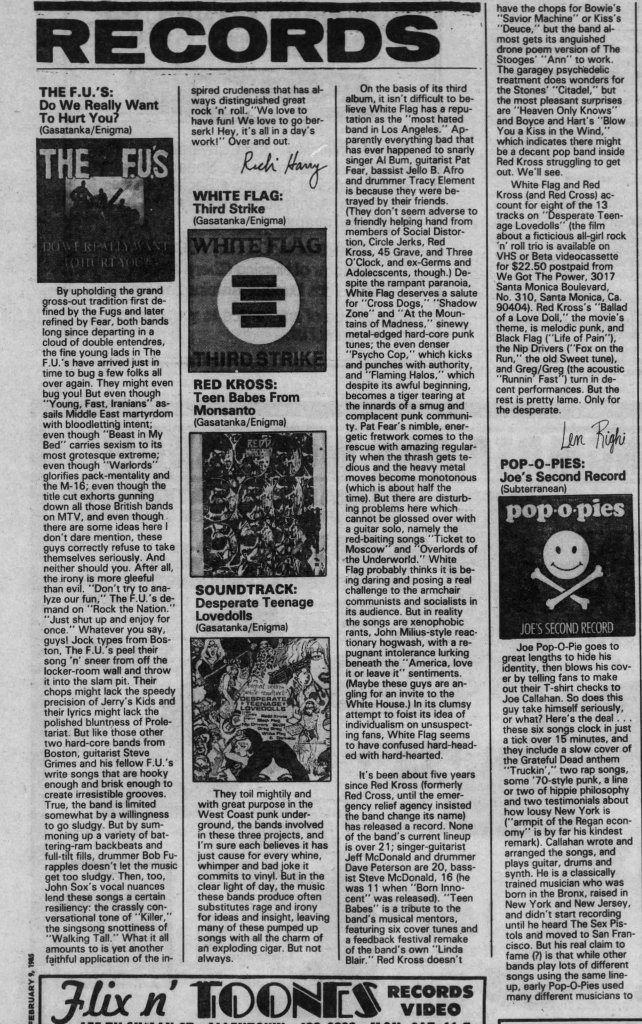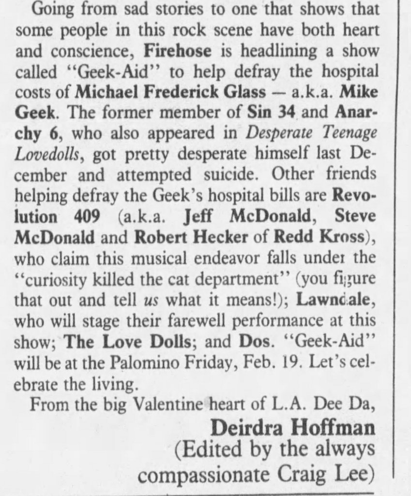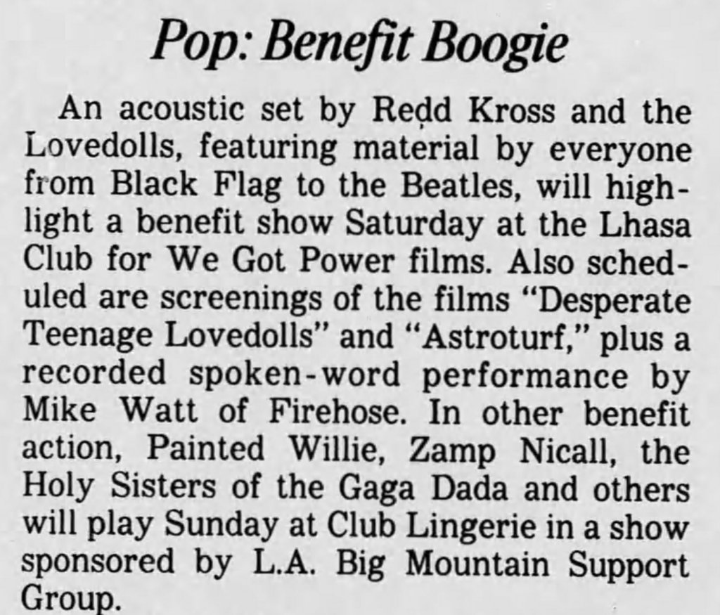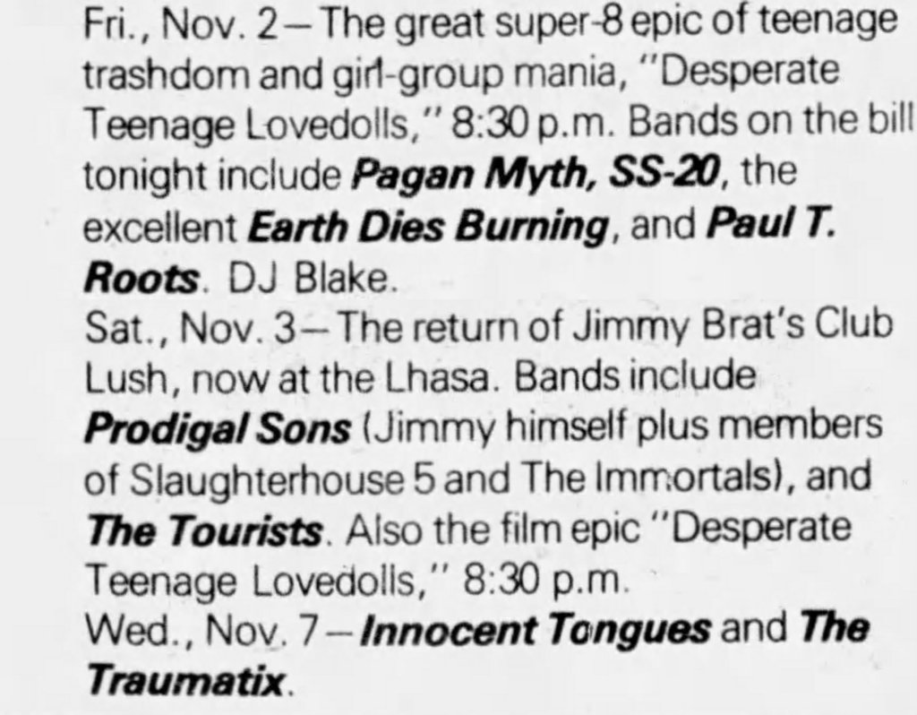Like a lot of Gen X kids, I first saw Markey’s awesome little punk-rock epic on VHS. Whether you were a punk kid, metalhead, or just a general part of a J. Mascis “Freak Scene” style group, somewhere a copy of Desperate Teenage Lovedolls was trading hands nearby. It is one of the few films that matched the sloppy energy of our collective record collections and, best of all, it felt authentic. I was watching this shit as a suburban midwest kid, and it made me feel a part of a wild scene I’d only read about in the pages of Maximum Rock n Roll.